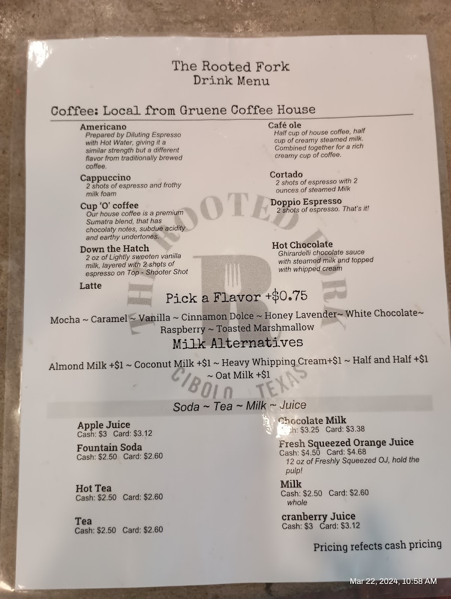Welcome to The Rooted Fork, a culinary gem located at 201 N Main St, Cibolo, TX. Known for its vibrant and welcoming atmosphere, this eatery is a must-visit for brunch lovers. The breakfast menu, available Wednesday through Friday, features hearty favorites that are anything but ordinary.